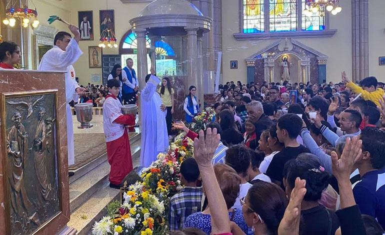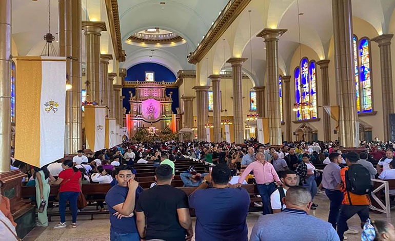 “Les damos la bienvenida a nuestros hermanos peregrinos, que han estado aquí, a los que están y los que están por llegar para visitar a nuestra Morenita Santa María de Suyapa”.