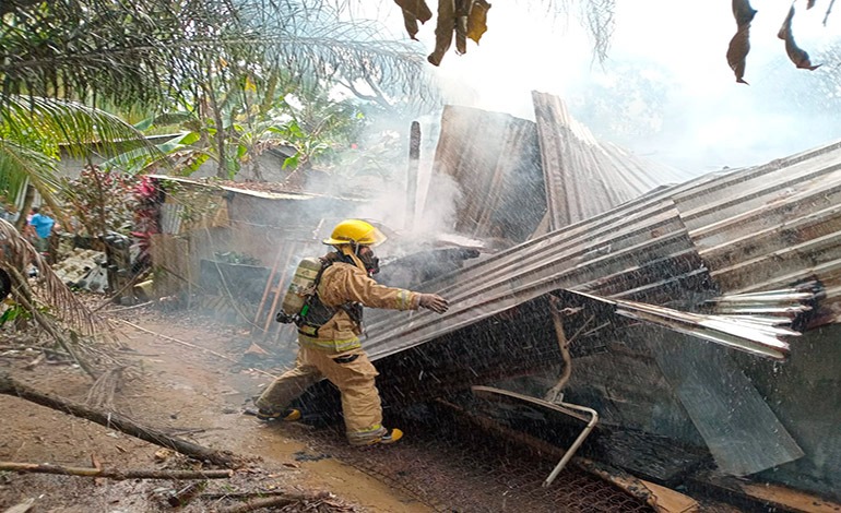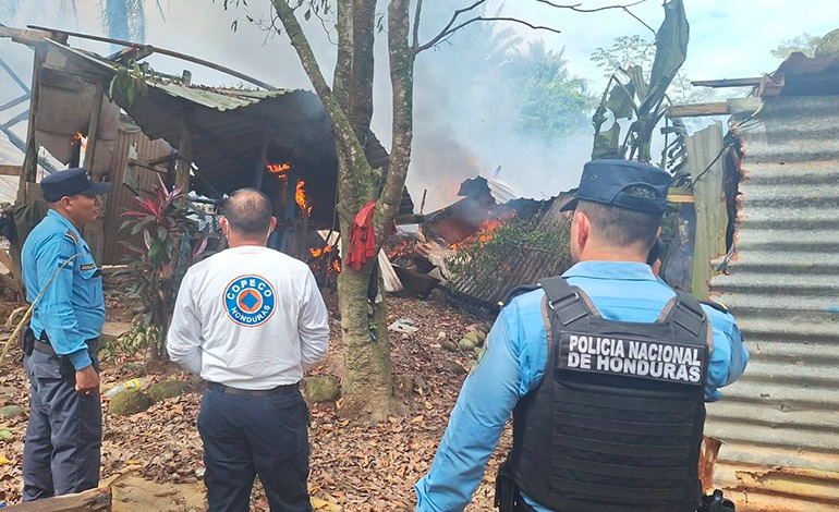 Un adulto y dos nietos murieron calcinados ayer durante el incendio extendido a cuatro viviendas de madera en el sector Lomas Perú, en la ciudad de La Ceiba, Atlántida, Caribe de Honduras.