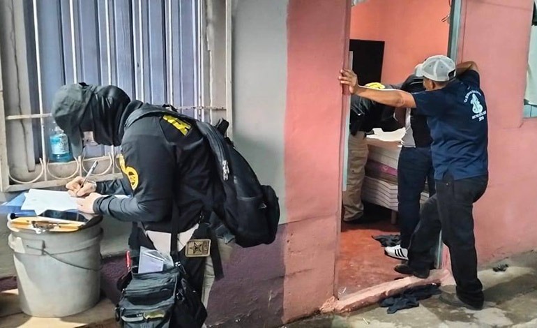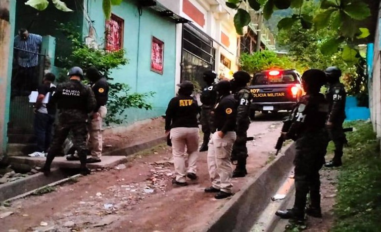 FRANCISCO MORAZÁN. – La Unidad Contra la Trata, Explotación Sexual Comercial y Tráfico de Personas (UTESCTP) y la Agencia Técnica de Investigación Criminal (ATIC), con el apoyo de la Policía Militar del Orden Público (PMOP), ejecutan un allanamiento de domicilio en la colonia Lomas del Calán, Villanueva, Cortés.