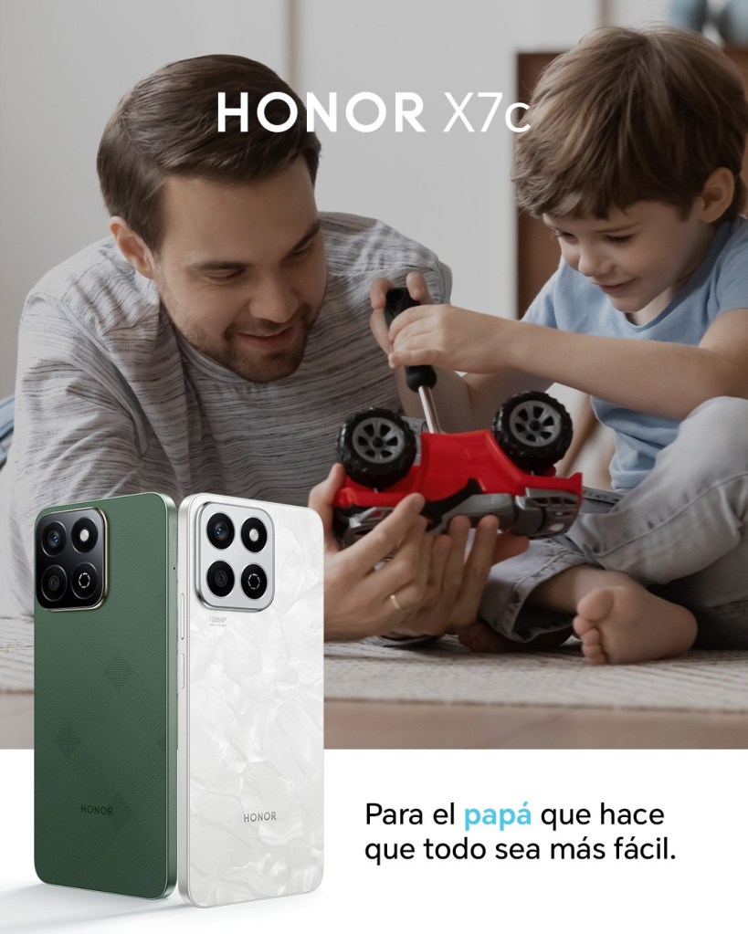 **HONOR X7c: Para los papás que buscan equipos que sean realmente resistentes, capaces de soportar caídas, golpes y condiciones adversas, como protección contra salpicaduras de agua y polvo, sin perder su funcionalidad. Más allá de su robustez, el HONOR X7c destaca por su impresionante batería de 5200mAh, que garantiza un uso prolongado a lo largo del día. También cuenta con un sistema de cámara de 108MP, capaz de capturar imágenes nítidas y vibrantes en cualquier situación. Con inteligencia artificial integrada, cada foto se convierte en una obra de arte, ideal para inmortalizar esos momentos especiales que merecen ser recordados.
