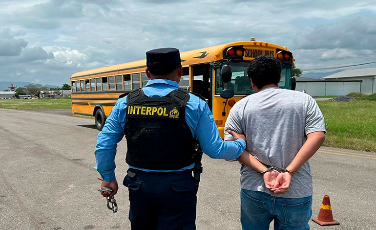 Humberto Neftalí Rodríguez Wood, líder de las organizaciones criminales “Los Olanchanos” y “La H”, llegó este mediodía a Honduras en un vuelo de deportados procedente de Texas, Estados Unidos. A su llegada, fue el primero en descender del avión y, de inmediato, agentes policiales lo detuvieron y le colocaron esposas en las manos. También fueron arrestados otros dos compatriotas que viajaban en el mismo vuelo, que transportaba a un total de 125 hondureños deportados.