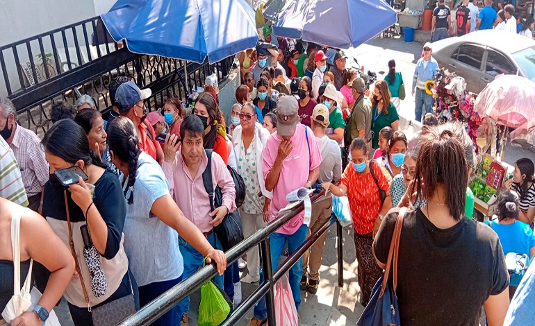 Horas más tarde, las filas eran interminables, bajo un fuerte sol y sin la posibilidad de poderse sentar; personas de la tercera edad se quejaron por la falta de coordinación y el mal servicio que se les presta.