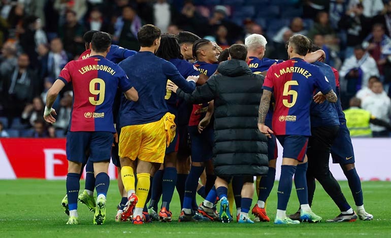 El Barcelona derrotó por 4-3 al Real Madrid, pese al hat-trick del francés Kylian Mbappé, un resultado que casi sentencia el título liguero para el club azulgrana, este domingo en el Estadio Olímpico de Montjuïc.
