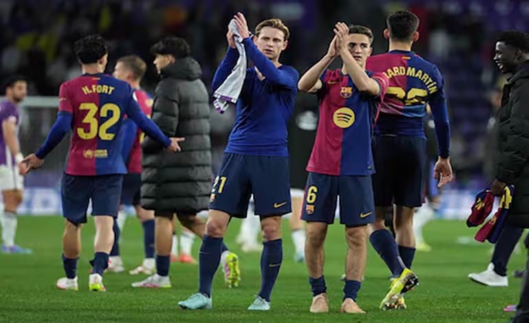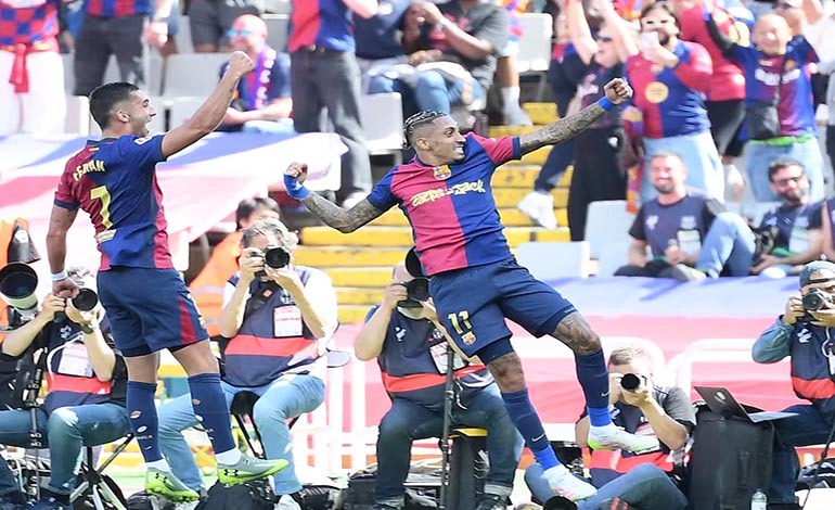 Un doblete del brasileño Raphinha (34 y 45) y los goles de Eric García (19) y Lamine Yamal (32) dieron la vuelta al marcador que permiten al equipo azulgrana tomar una ventaja de siete puntos sobre el club blanco a falta de solo tres jornadas para la final.