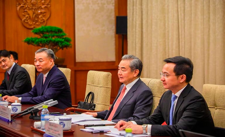 El secretario de Relaciones Exteriores y Cooperación Internacional, Eduardo Enrique Reina, sostuvo una reunión bilateral con el Canciller de la República Popular China, Wang Yí, en el marco del fortalecimiento de las relaciones diplomáticas y de cooperación entre ambos países.