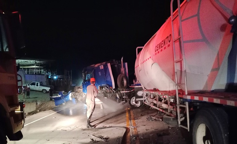 El cuerpo de bomberos respondió inmediatamente al reporte de accidente y acudieron al sector. Tras llegar, procedieron a desconectar las baterías de los vehículos para prevenir posibles incendios o explosiones y a lavar cuidadosamente el combustible derramado del tanque del tráiler para evitar incidentes mayores.