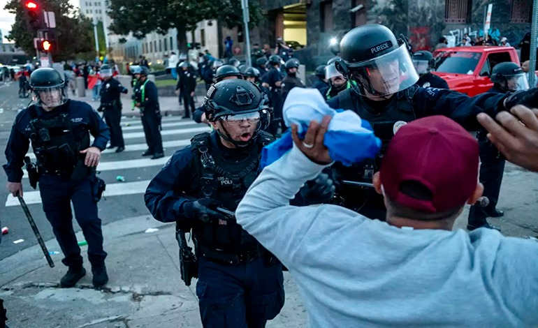 La alcaldesa de Los Ángeles, Karen Bass, dijo el domingo a un canal local que durante la noche fueron cometidos «actos de vandalismo» pero sostuvo que la situación «está bajo control»