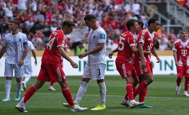 Kingsley Coman (6 y 21), Michael Olise (20 y 45+3) y el veterano Thomas Müller (45 y 89) aportaron sendos dobletes, mientras que Sacha Boey (18) completó la cuenta ante 21.152 espectadores.