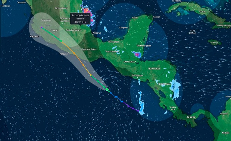 A las 12H00 GMT, se desplazaba hacia el noroeste a una velocidad de 15 km/h. Se espera que continúe su trayectoria por el sur de México durante el día y que se debilite «rápidamente» al avanzar sobre una cadena montañosa, según el NHC.
