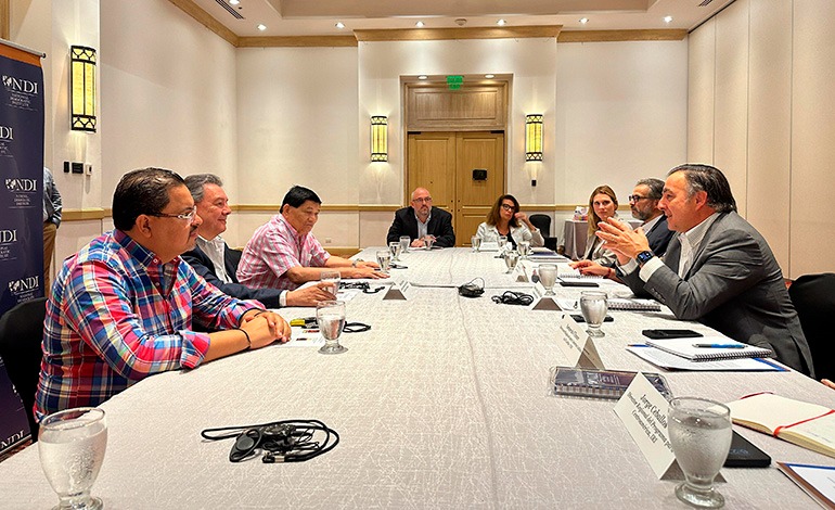 El presidenciable de la Democracia Cristiana, Mario “Chano” Rivera, se reunió este lunes con la delegación del Instituto Nacional Demócrata (NDI), en el marco de su Misión de Estudio y Acompañamiento Pre-Electoral desplegada del 4 al 8 de agosto. En el encuentro, al que asistieron también los candidatos a diputados Flavio Nájera y Felicito Ávila, exigió condiciones claras y justas para el proceso electoral, advirtiendo que “el país no soporta otro fraude ni arreglos entre cúpulas”.