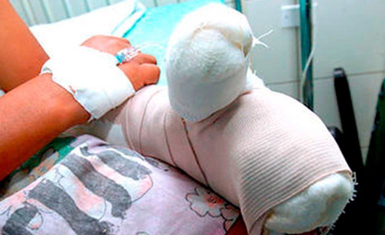El portavoz del Centro Hondureño para el Niño Quemado (Cehniq), Alfredo Ortez, confirmó que el menor fue trasladado al Hospital Materno Infantil, en Tegucigalpa, donde se le practicó la amputación.