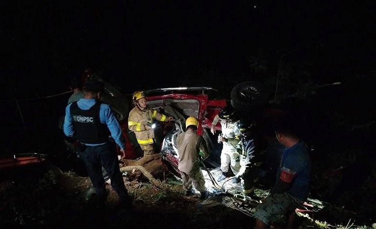 El siniestro ocurrió cuando el vehículo doble cabina en el que se transportaban colisionó con otros automóviles y posteriormente cayó a una hondonada de más de 10 metros de profundidad.