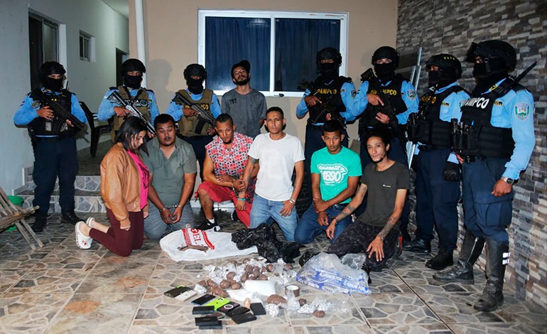 Como resultado, fueron capturados siete integrantes de la organización criminal “Los Olanchanos”, quienes utilizaban este lugar como laboratorio para el procesamiento de cocaína, la cual posteriormente era distribuida en distintos puntos de Tegucigalpa y Comayagüela.