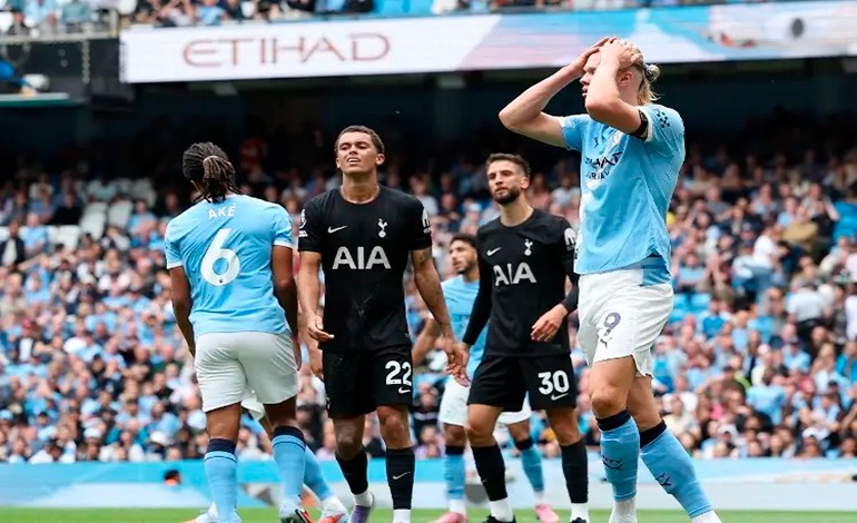 MANCHESTER, Inglaterra. – El Manchester City sufrió un duro revés en su intento por recuperar la confianza perdida. En su debut como local en la temporada 2025-26 de la Premier League, cayó 0-2 frente al Tottenham Hotspur, mientras que el Arsenal goleó 5-0 al Leeds United y se colocó provisionalmente en la cima de la tabla.