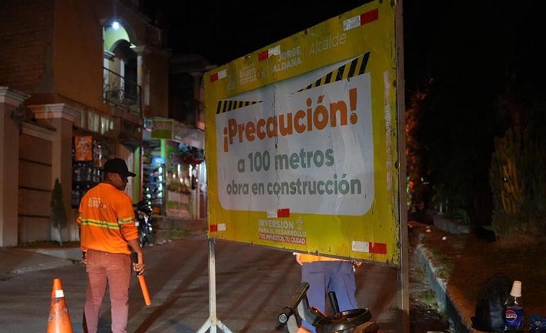 En Las Casitas, los trabajos se realizan en horario nocturno para evitar interrupciones al tránsito y acelerar la entrega de las obras.