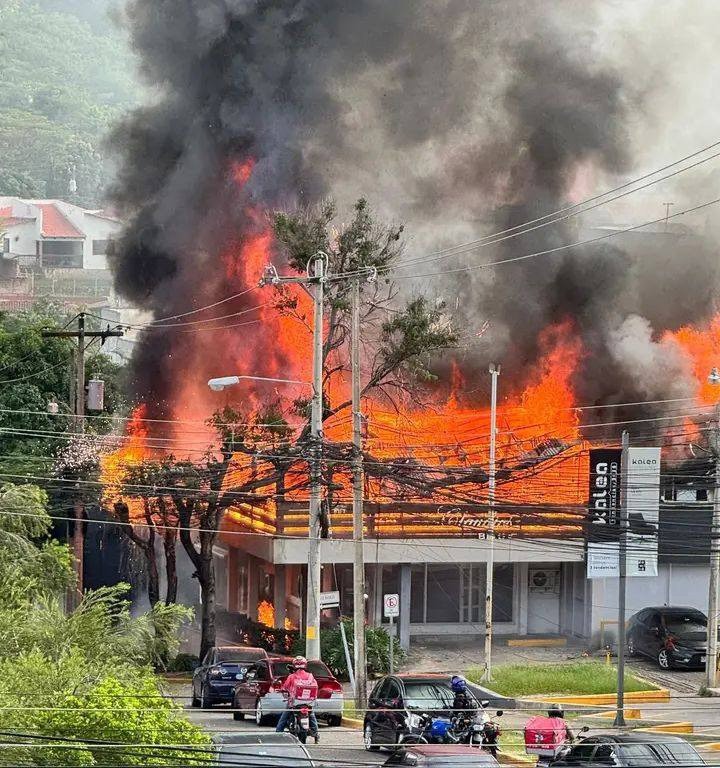 Un pavoroso incendio consumió este lunes las instalaciones del restaurante Claudio’s Bistro, ubicado en la colonia Castaño Sur, sobre la Avenida Los Naranjos, en la capital hondureña.