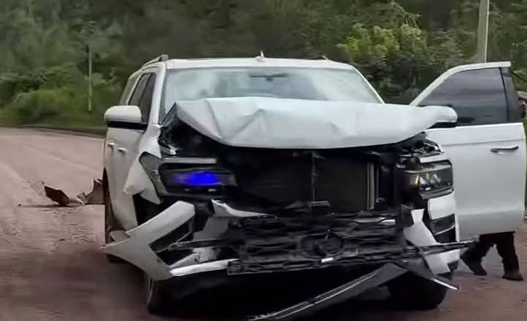 El percance ocurrió en plena carretera, cuando uno de los vehículos en los que se transportaban —una Expedition— sufrió daños severos en su parte frontal, según imágenes difundidas en redes sociales.