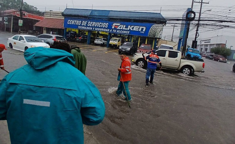 En la calle Golán, se reportaron inundaciones urbanas por el colapso de tragantes, lo que obligó a cerrar temporalmente el paso vehicular.