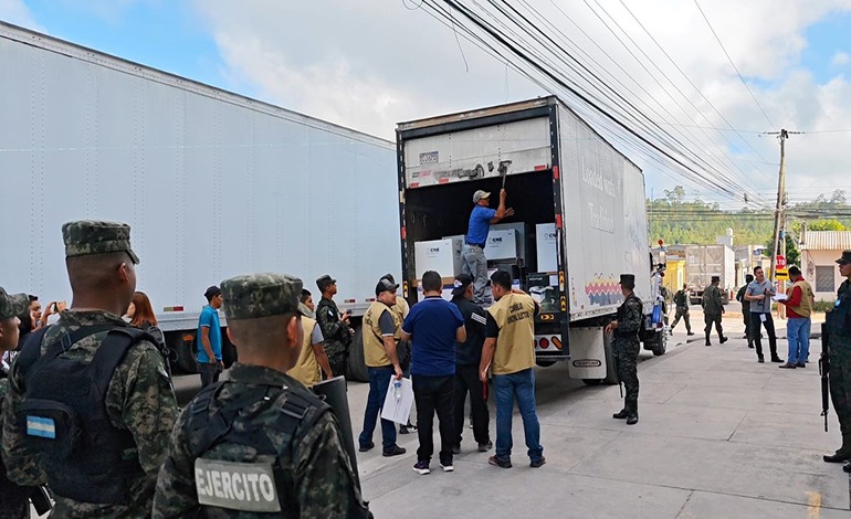 El material partió desde el Centro Logístico Electoral (CLE) en Tegucigalpa, donde días atrás se dio el banderillazo inicial para el envío hacia varios departamentos, incluyendo Copán, Islas de la Bahía y La Paz. En total, más de 26,000 efectivos militares participan en la custodia y vigilancia del material electoral en todo el país, en coordinación con el CNE.