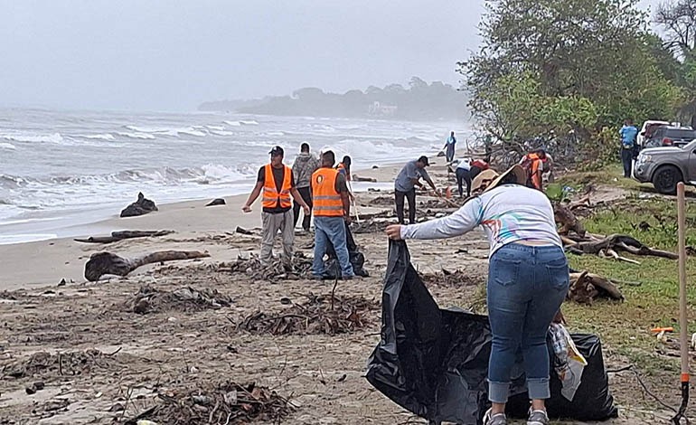 LA CEIBA. – Tal y como estaba programado este 22 de marzo, desde las 6 de la mañana se llevó a cabo un amplio operativo de limpieza en las playas de Río María y Corozal, encabezado por el personal de la Municipalidad de La Ceiba bajo la dirección del alcalde Bader Dip. La jornada contó además con maquinaria de ingeniería municipal, desplegada para retirar la gran cantidad de basura y madera acumulada en ambas zonas costeras.