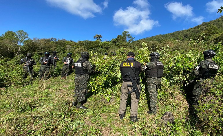 En lo que va del año, las FFAA han destruido más de 20 plantaciones con un total superior a 260,000 arbustos de coca en los departamentos de Colón, Atlántida, Yoro, Olancho y Santa Bárbara.