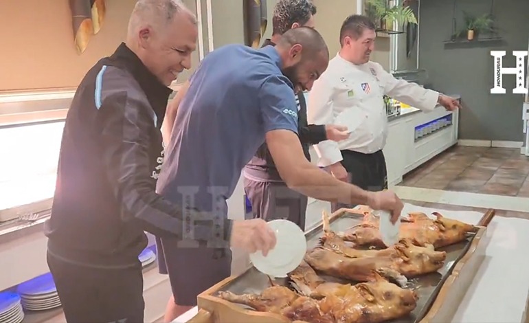 El equipo nacional antes del banquete fue parte del tradicional acto de trinchar con un plato el cochinillo, los elegidos para el peculiar hecho fueron José Ernesto Mejía secretario de la Federación de Fútbol de Honduras (FFH), José Molina técnico de la selección y el capitán y portero Edrick Menjívar.