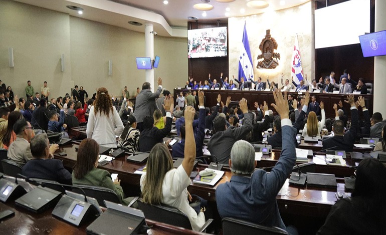 Durante la lectura de la denuncia de juicio político frente al estado de la Junta Directiva del Congreso Nacional, se instaló un «valla humana» integrada por agentes de seguridad del Poder Legislativo, para evitar incidentes.