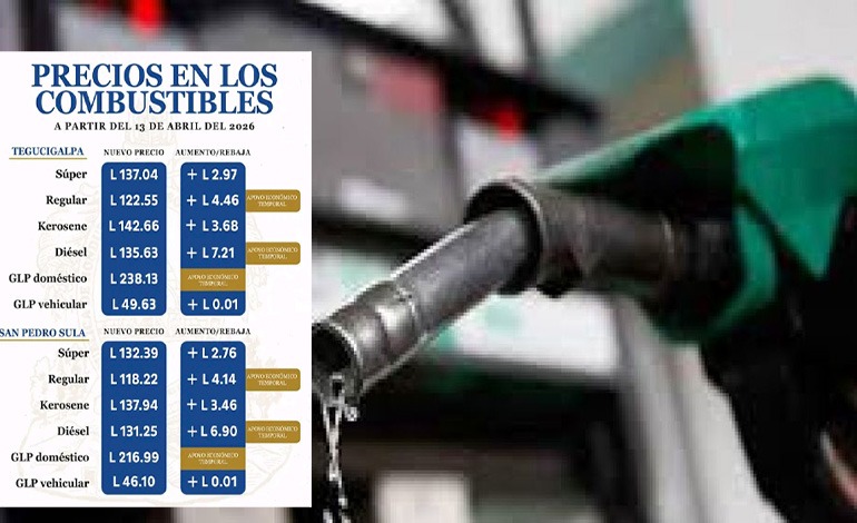 En San Pedro Sula, los precios también reflejan aumentos: la gasolina Súper costará L 132.39 (+ L 2.76), la Regular L 118.22 (+ L 4.14), el kerosene L 137.94 (+ L 3.46) y el diésel L 131.25 (+ L 6.90).