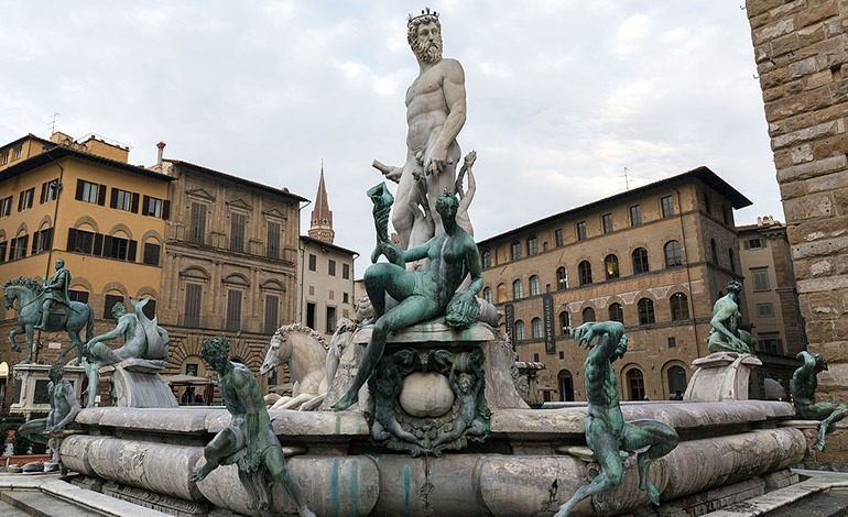 La Fuente de Neptuno fue encargada en 1559 por Cosimo I de Medici, duque de Florencia, para conmemorar la boda de su hijo Francesco con la gran duquesa Juana de Austria. La obra, realizada por el escultor Bartolomeo Ammannati, es uno de los símbolos más reconocidos del Renacimiento italiano y un atractivo turístico de gran relevancia.