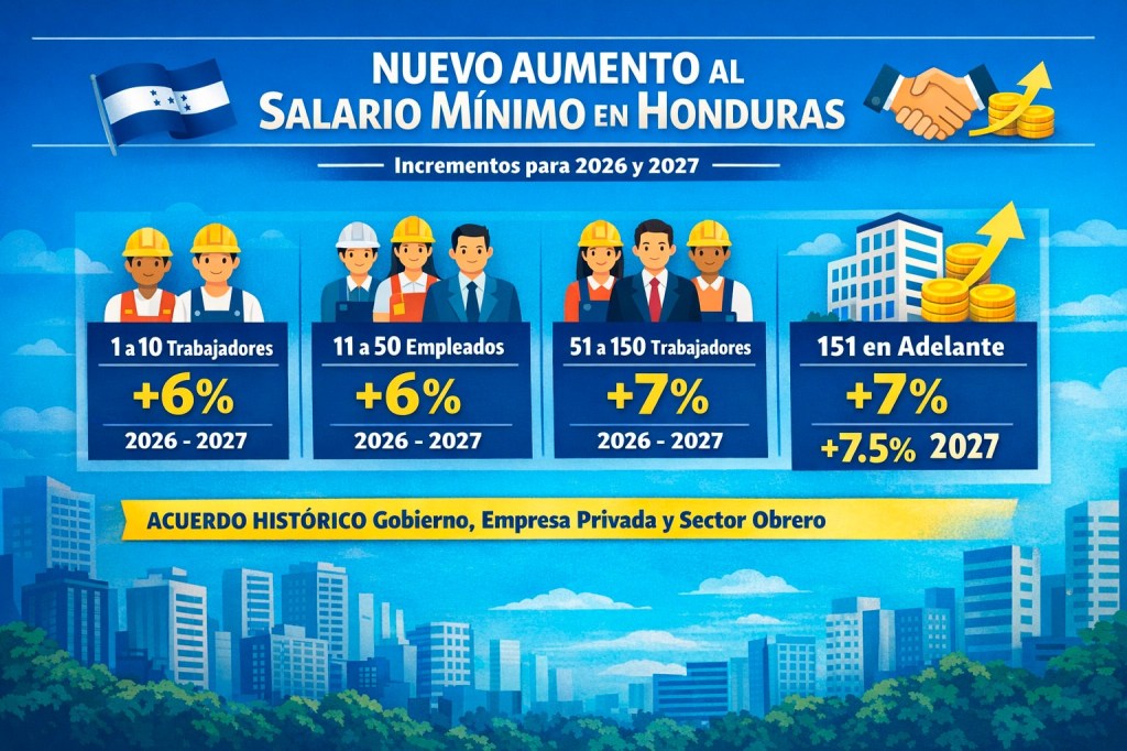 Tras tres meses de intensas negociaciones, el sector obrero, el empresariado y el Gobierno de Honduras alcanzaron un acuerdo histórico, por unanimidad, para incrementar el salario mínimo entre un 6 y un 7.5 por ciento durante los años 2026 y 2027.